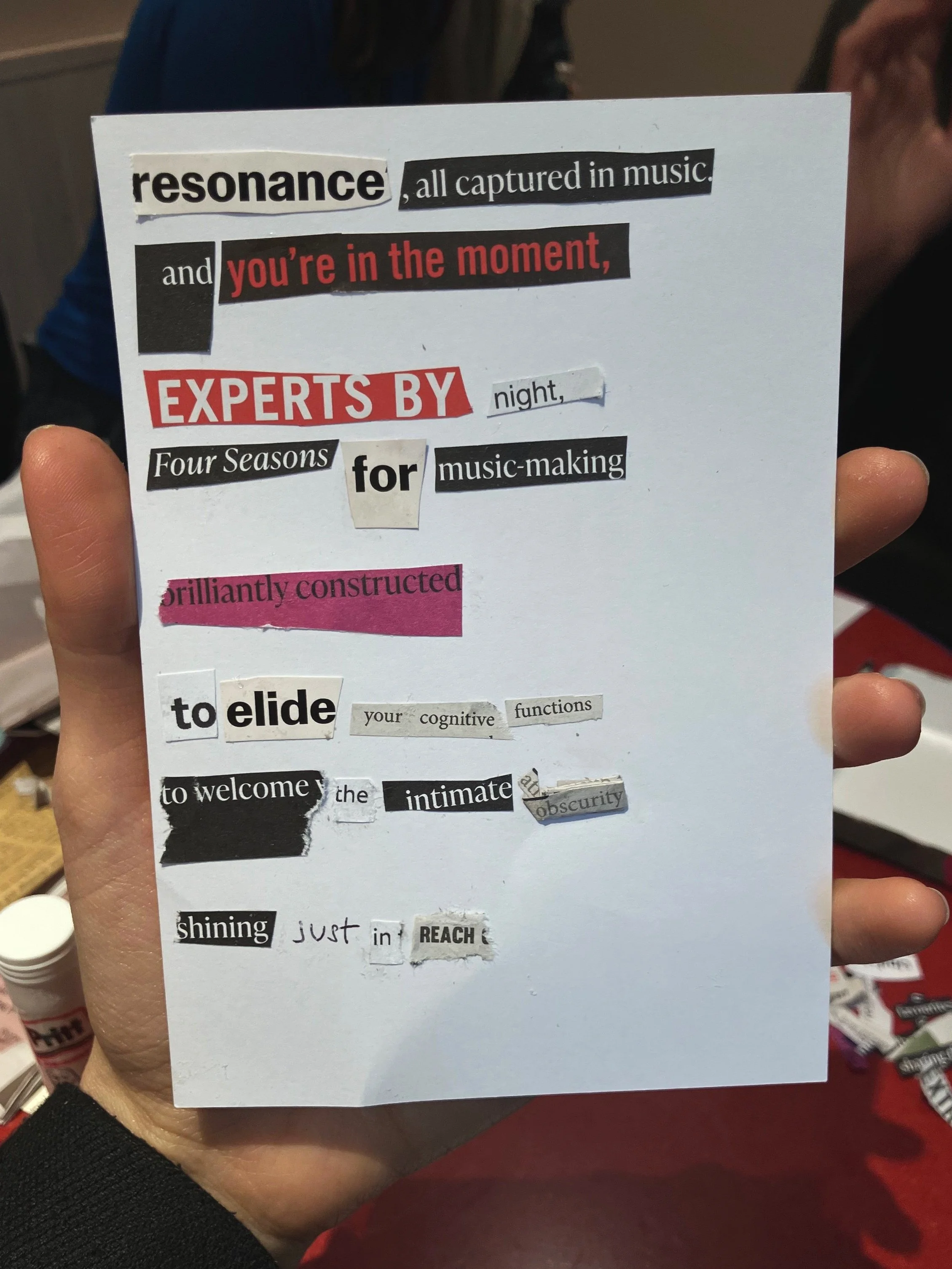 Poem from magazine and newspaper cutouts. I only tweaked some of the structure in the final written text version on the right.